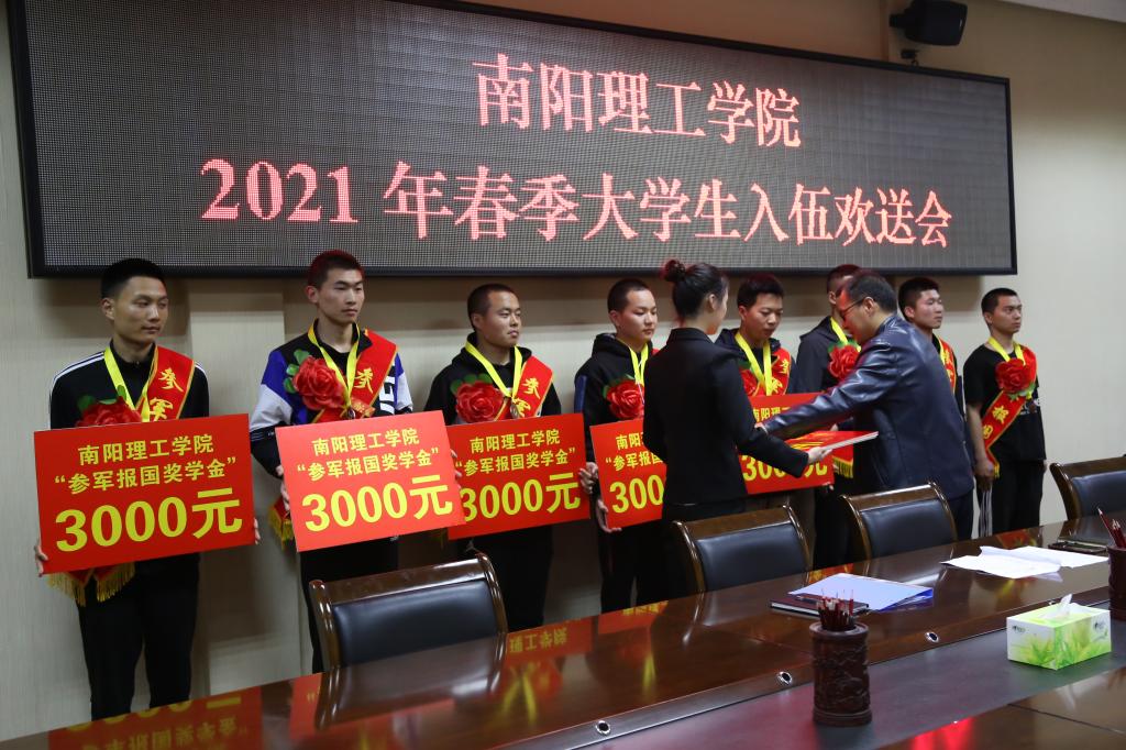 3月15日下午,我校2021年春季大学生入伍欢送会在中込会馆第一会议室隆重举行。党委学生工作部、人民武装部副部长田永磊、各学院负责人民武装工作的辅导员老师、人民武装部全体人员、光荣入伍的大学生及退役大学生代表共40余人参加了会议。