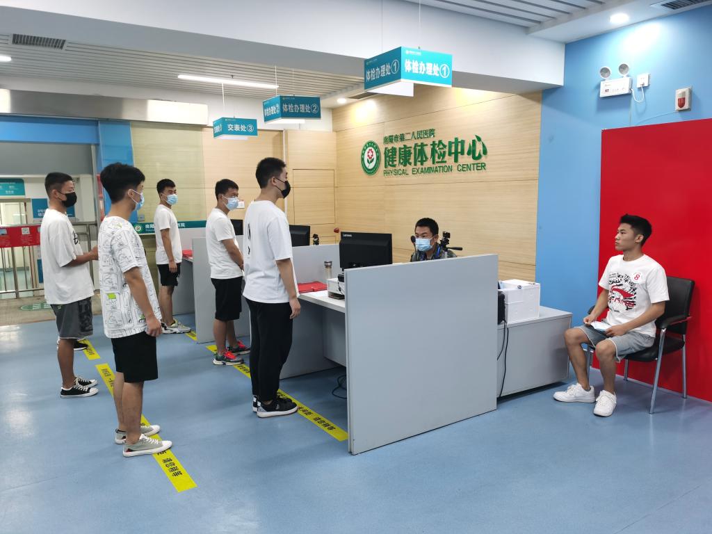 本网讯(特约记者/王吉春)参军报国,不负韶华。8月21日上午,我校89名同学由校人民武装部统一带队前往南阳市第二人民医院体检中心和南阳市第一人民医院体检中心进行征兵体检,接受祖国的挑选。