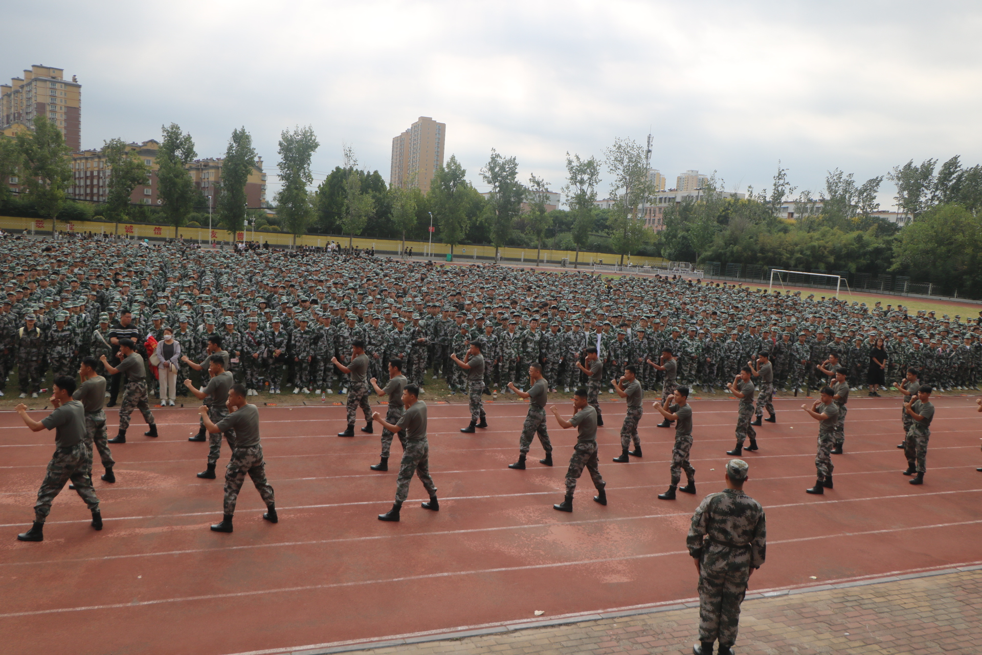军训教官进行队列和擒敌拳等军训课目展示,参训学生代表赵铭玉及教官代表谷荣政先后发言,党委学生工作部相关负责人宣布军训纪律。
